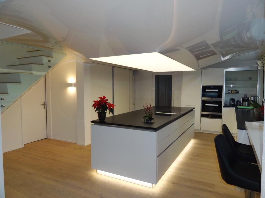 Unsere Decken sind wahre Kunstwerke, die nicht nur funktional sind, sondern auch eine einzigartige Atmosphäre schaffen. Von hochglänzenden Oberflächen bis hin zu massgeschneiderten Formen bieten wir individuelle Lösungen für jede Umgebung, sei es in öffentlichen Räumen, Gewerbeobjekten oder Ihrem Zuhause. Entdecke die Vielfalt unserer Produkte und lasse Dich von ihrer Schönheit und Funktionalität begeistern. Wärmedämmung, eine unzählige Auswahl an Designs und Formen sowie die Möglichkeit, Hinterleuchtung, Foliendruck oder Spiegeleffekte zu integrieren – diese Lösungen sind vielseitig einsetzbar und verleihen jedem Raum eine einzigartige und angenehme Atmosphäre.